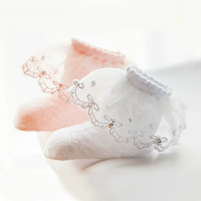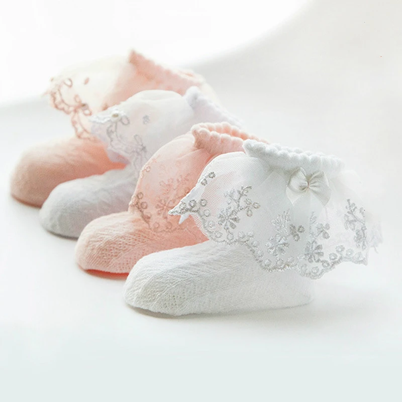 4 Pairs/set Lace Socks Summer Short Solid Combed Cotton Baby Girls Mesh Thin Princess Socks Breathi