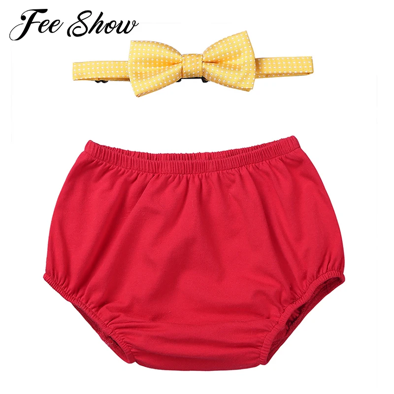 Infant Baby Boys Outfit First 1st Birthday Diaper Cover Bloomers with Bow Tie Photo Prop Headband S