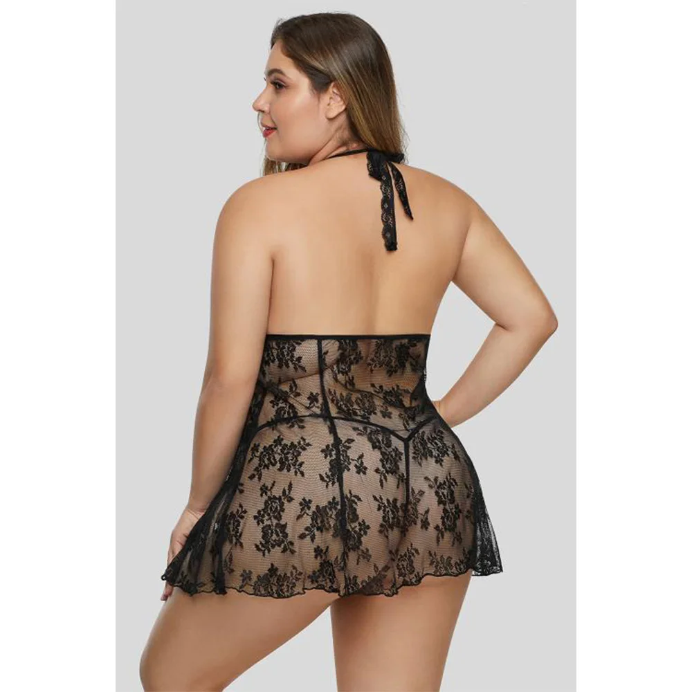 Sexi Mujer Black Transparent Lace Baby Doll Sexy Lingerie Plus Size Open Back Erotic Sexy Lingerie