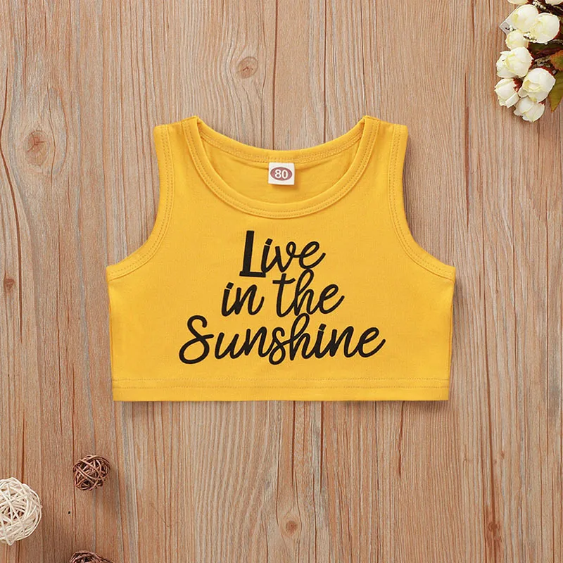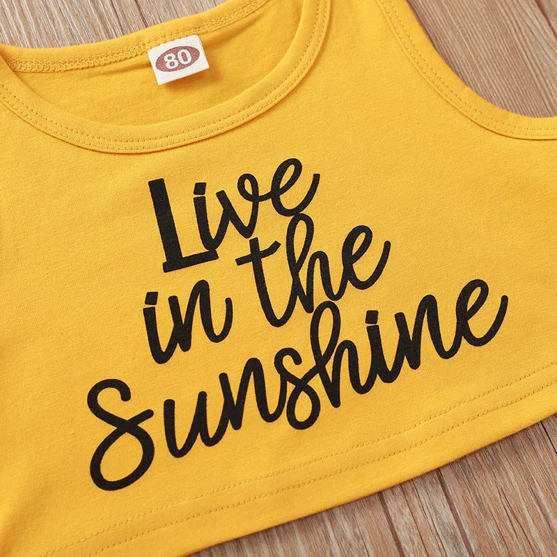 TOP Sunflower Baby Clothes Outfit Live In The Sunshine Letters Print Crop Top and Tassel Floral Shorts