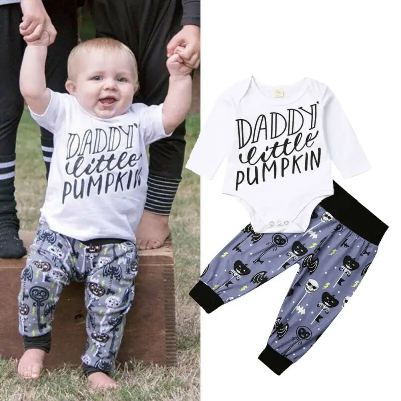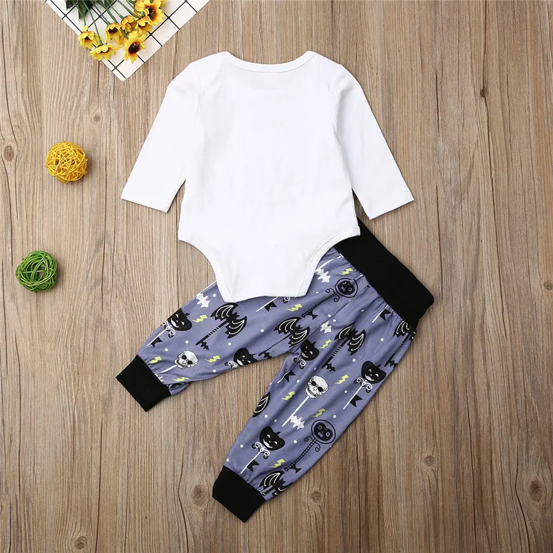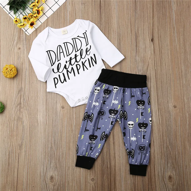 HIGH QUALITY 2019 Halloween Newborn Clothes Set Pumpkin Letter White Baby Girls Bodysuits Set Long Pants Girls S
