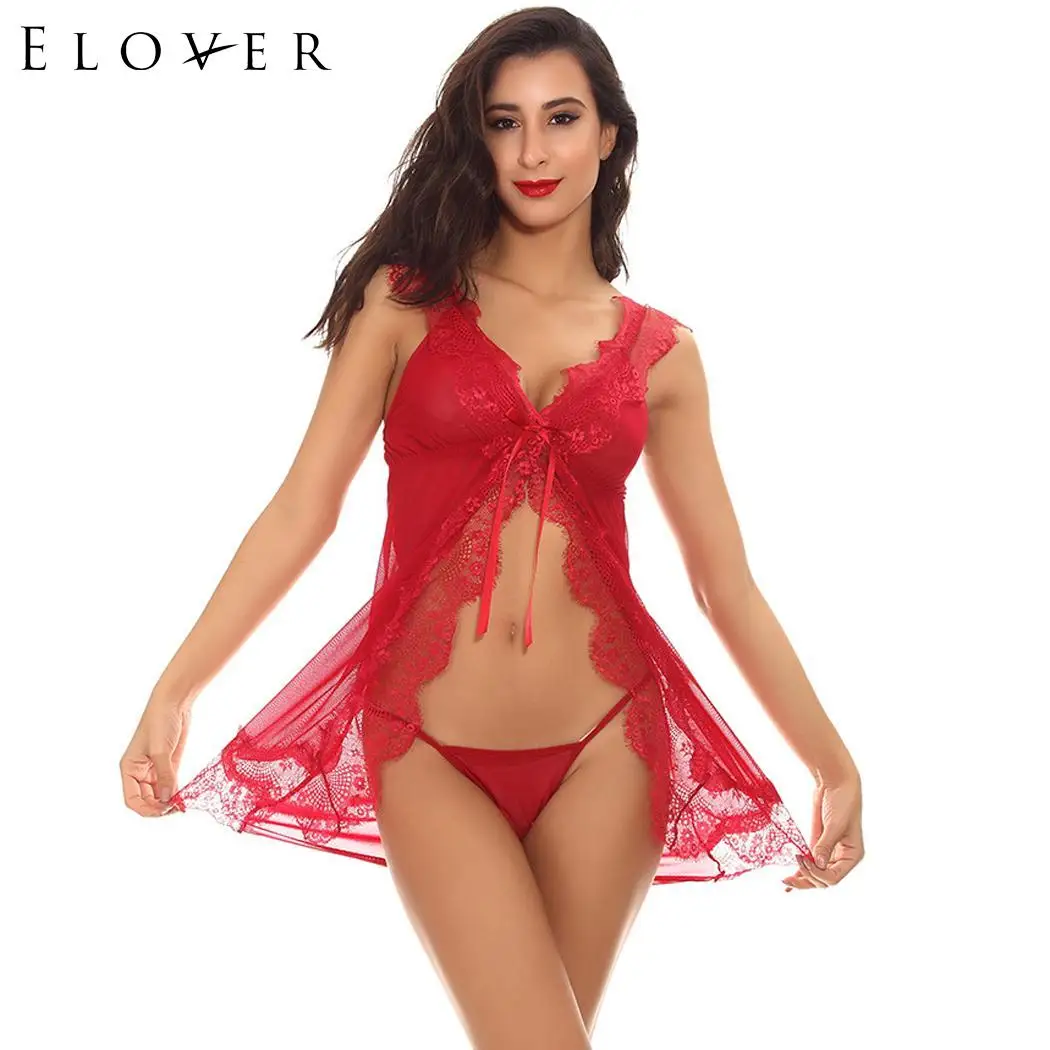 REVIEW TOP SELLER Elover Front Sexy Lingerie Lace Sleepwear Slim Knee V-neck Open Low Home Nightwear Women Waist Sexy
