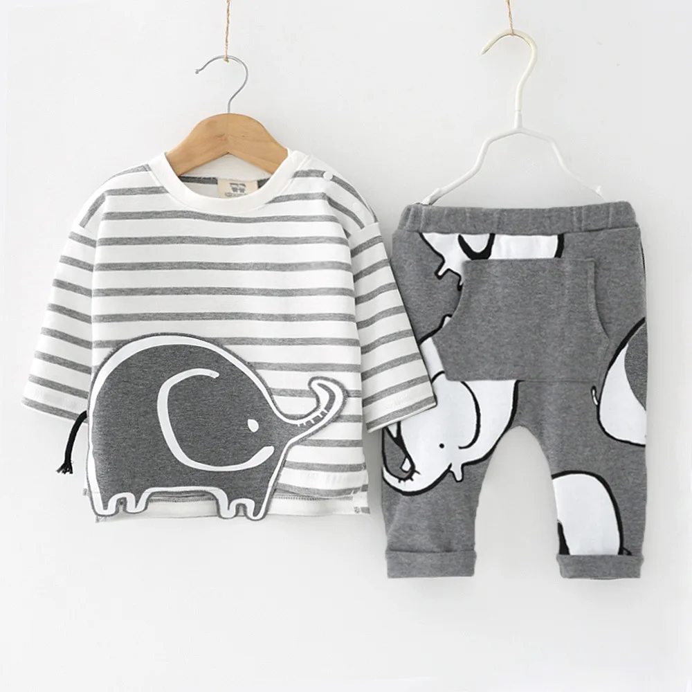 HIGH QUALITY Oklady 2019 Baby boy Clothes Set Long Sleeve Cotton Elephant Striped Print T-Shirt Tops Boys Girls