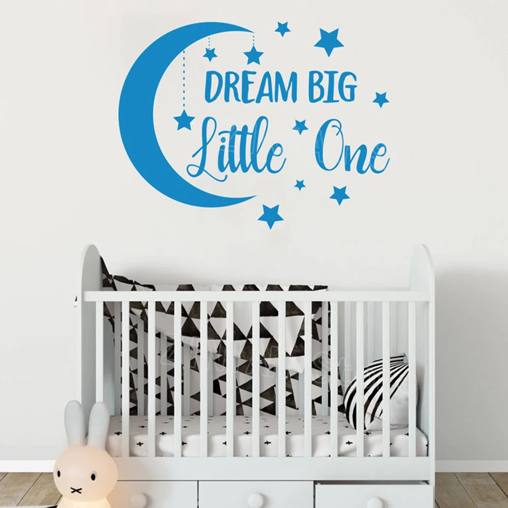 Dream Big Little One Wall Decal Moon and Stars Removable Baby Girl Boy Nursery Wall Stickers Childr
