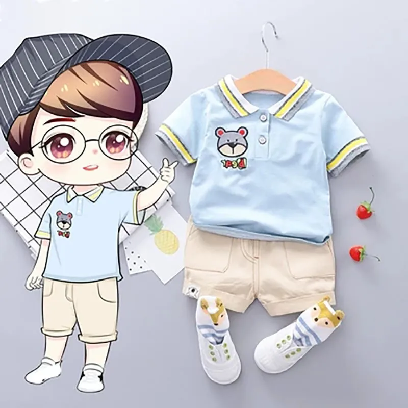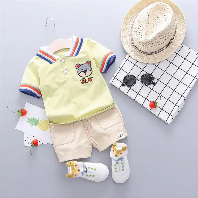 BEST QUALITY Summer Kids Boys Short Sleeve Cartoon Bear Print Tops Blouse T-shirt+Shorts Children Casual Outfits
