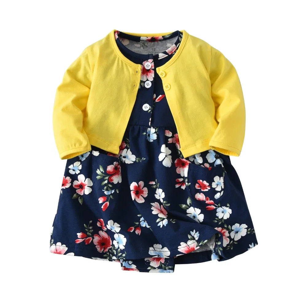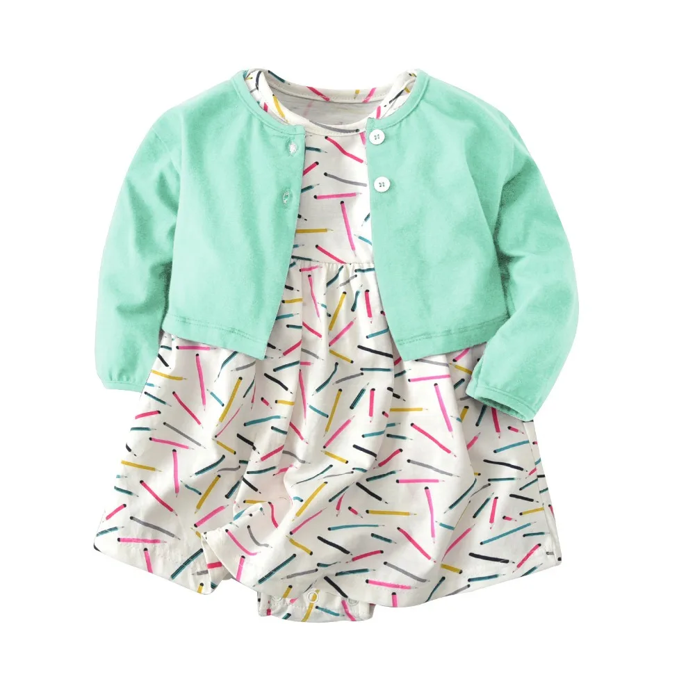 Baby Children Kids Clothing Girl Spring Summer Bodysuit Dress & Cardigan 2PCS Newborn Bebies Girls