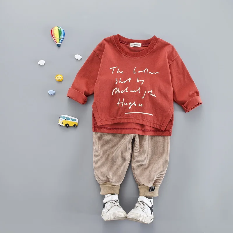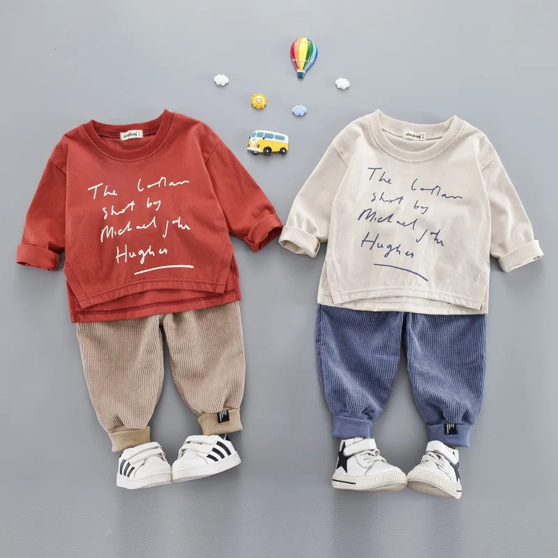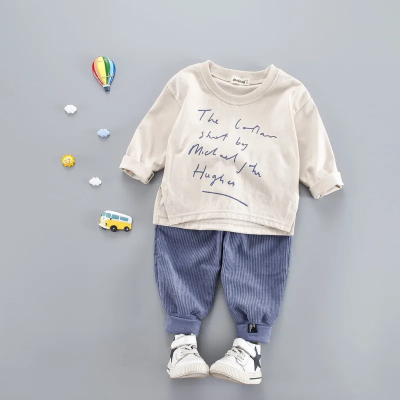 HIGH QUALITY Oklady Children's Clothing Letter Printed Baby Set Korean-Style Children Boy Girls Long Sleeve Swea
