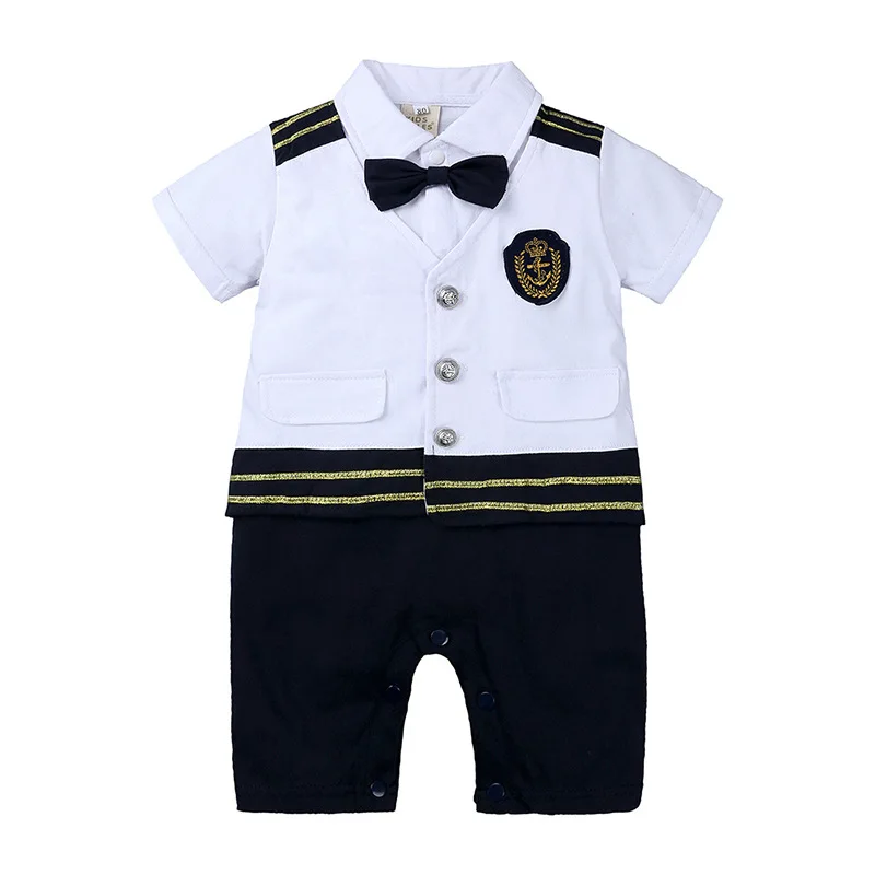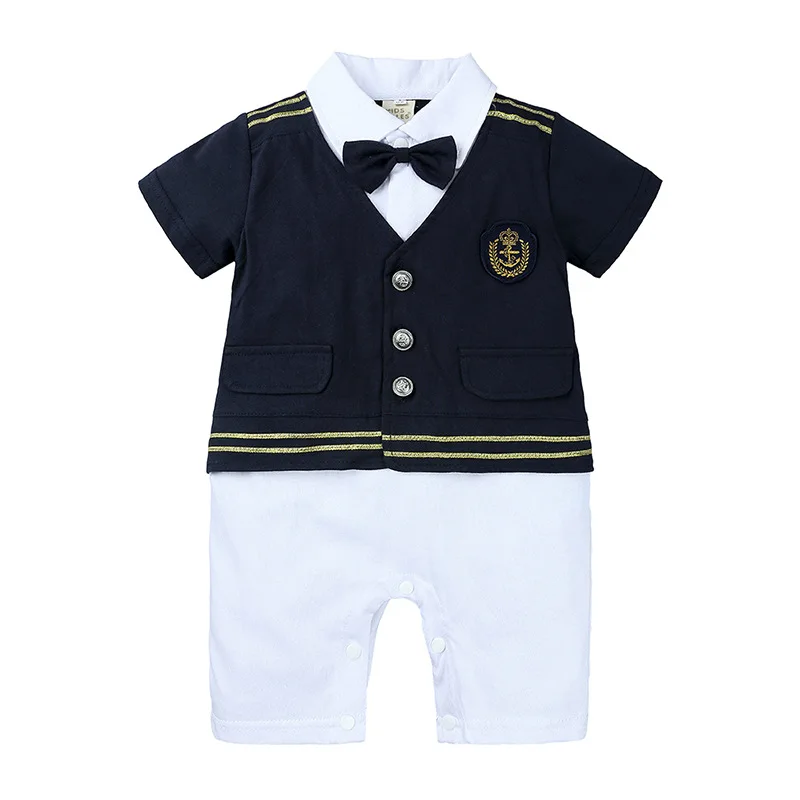 Summer New Baby Crawling Clothes Short Sleeved Boys Hundred Days Rompers Newborn Baby Cute Gentlema