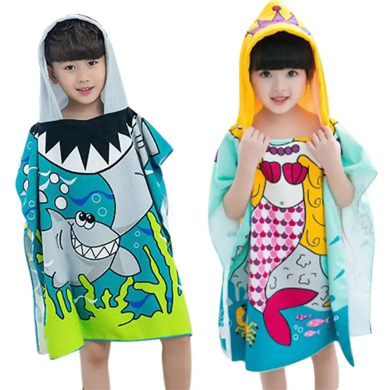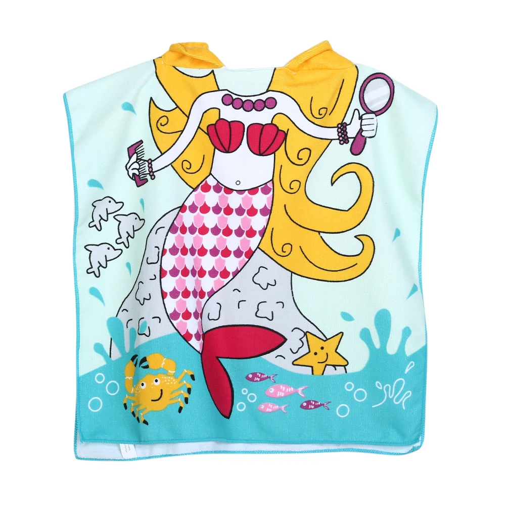 Baby Children Polyester Beach Cloak Towel Hooded Bath Towel Mermaid Pattern Cartoon Bath Towel For